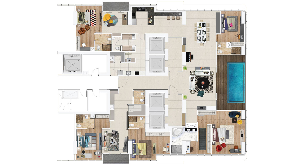 Luxuriate in your own private pool at the backdrop of twinkling city lights. Exclusively reserved for those at the top.