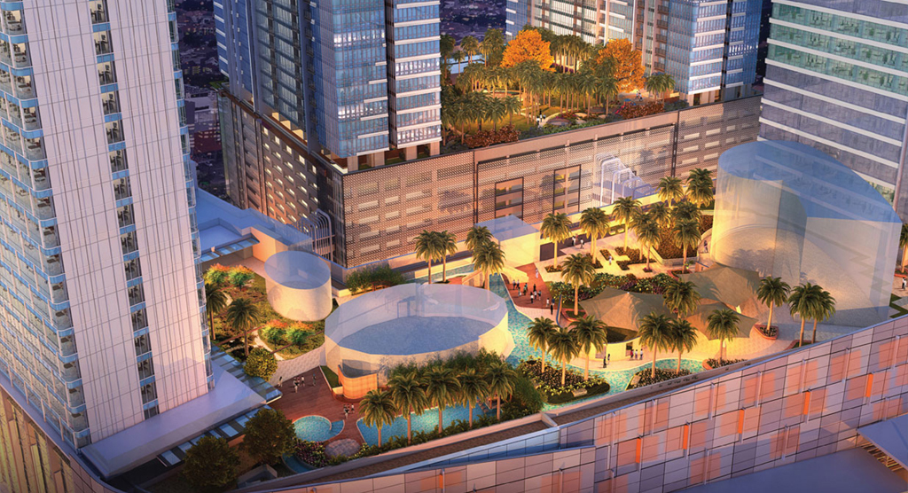 The Galaxy Residences sky pool, an impressive 120-m long swimming pool across the sky resort area, you can swim in the longest outdoor & shaded sky infinity pool in the city. Lounge in, or just relax at the pool side, whilst savoring breathtaking views.